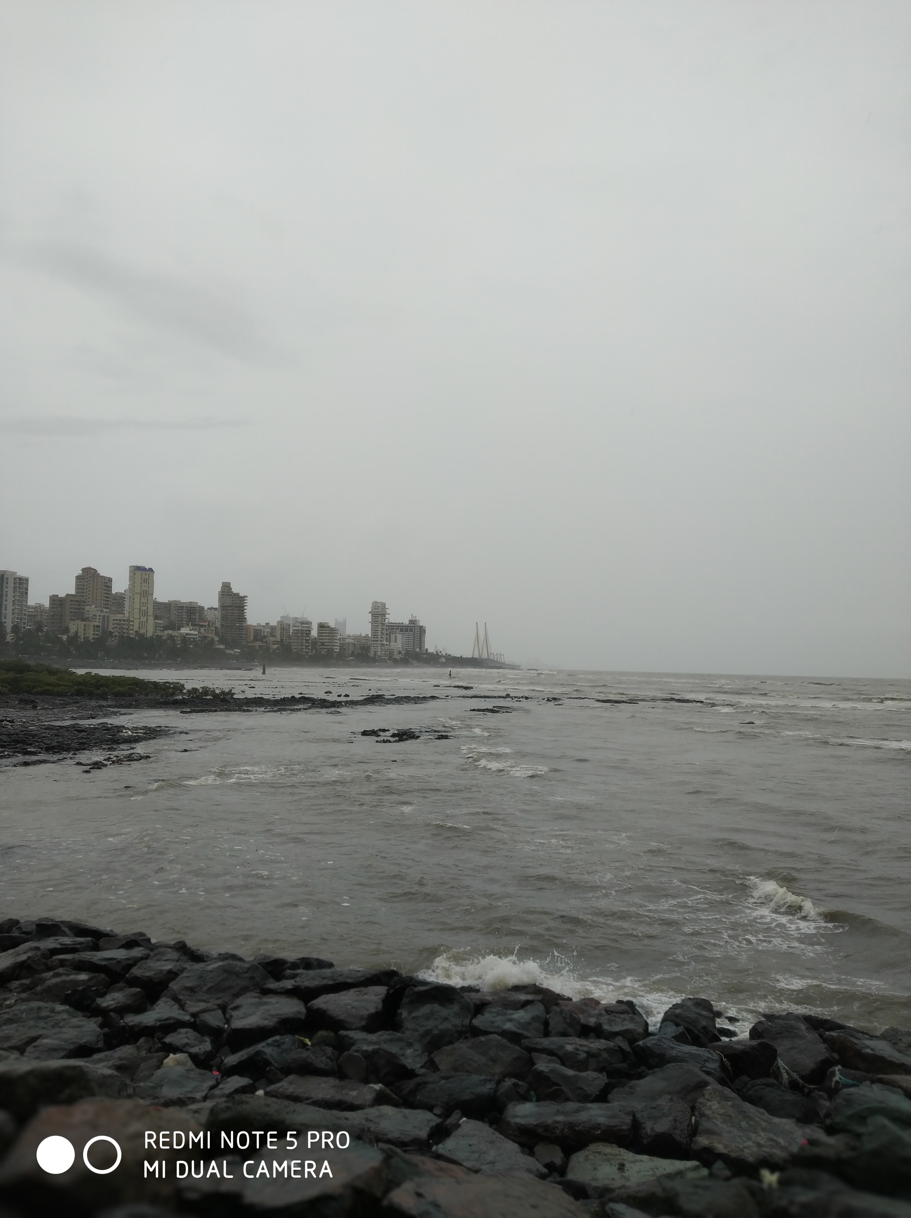 The rain now feels like hailstones pelting us, and we are fighting the wind to make our way ahead as the sea roars in its natural avatar. We stop for a shelter under an open bus stop, then decide against it, and make our way back to the beginning of our trail. The smack of the soles of my water laden sneakers against the tarred roads, and my dripping hair are my partners in crime as I quicken my pace. Deciding to call it a day, we unwind and stretch at Jogger’s Park, Bandra which is unsurprisingly sparsely populated on this rainy Sunday morning. We stretch for a bit, watching the fury of the waves against the shore, the lone fisherman standing on a the lone black outcrop hoping to catch his Sunday lunch, the few morning walkers, and the silhouette of the sea link in the distance ensconced in fog.